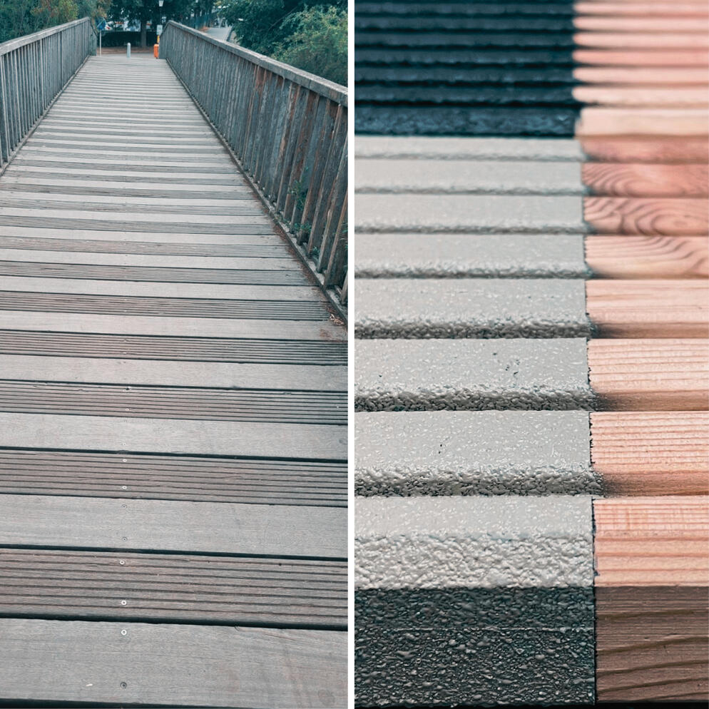 Um rutschfeste öffentliche Wege und witterungsbeständige Oberflächen zu gewährleisten, haben wir eine spezielle Beschichtung entwickelt, die vielen Umwelteinflüssen standhält.